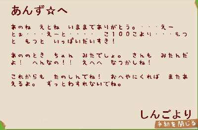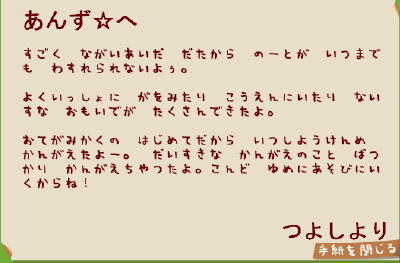 可愛いお手紙も書いてくれたよん。o@(^-^)@o。ニコッ♪